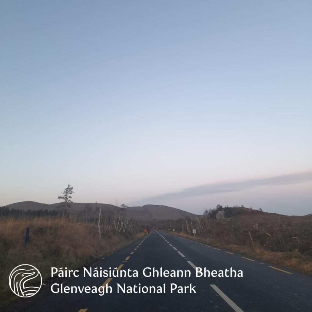 Works progressed last week to remove stands of non-native conifers along the main road (R251) passing Glenveagh National Park. The non-native conifer trees have been removed as part of the Glenveagh Woodland Management Strategy and they will be replaced by native tree species grown in the Glenveagh tree nursey. Although the landscape may look different in the short term, these actions will create healthier and more resilient woodlands for the future.